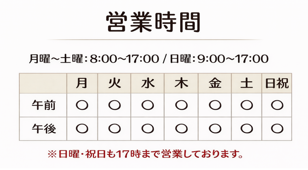 月曜日-土曜日 8:00~17:00